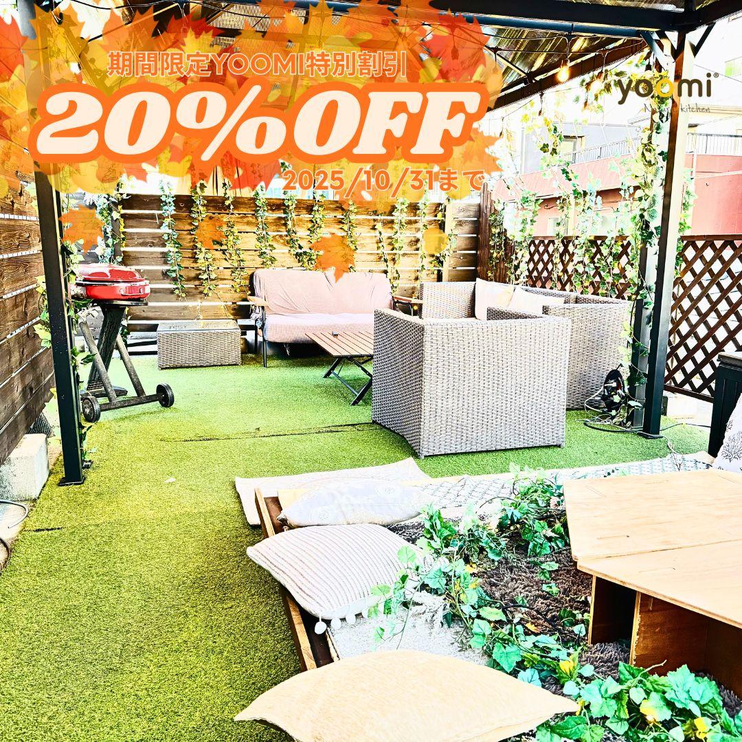 六本木の屋上テラスで、平日ランチをが期間限定で20%OFF!!気温も下がっているので風が気持ちいいこの季節だから嬉しいこの価格!!3時間飲み放題付きでゆったり屋上テラスで秋を楽しむ!期間:〜2025年10月31日(平日限定)